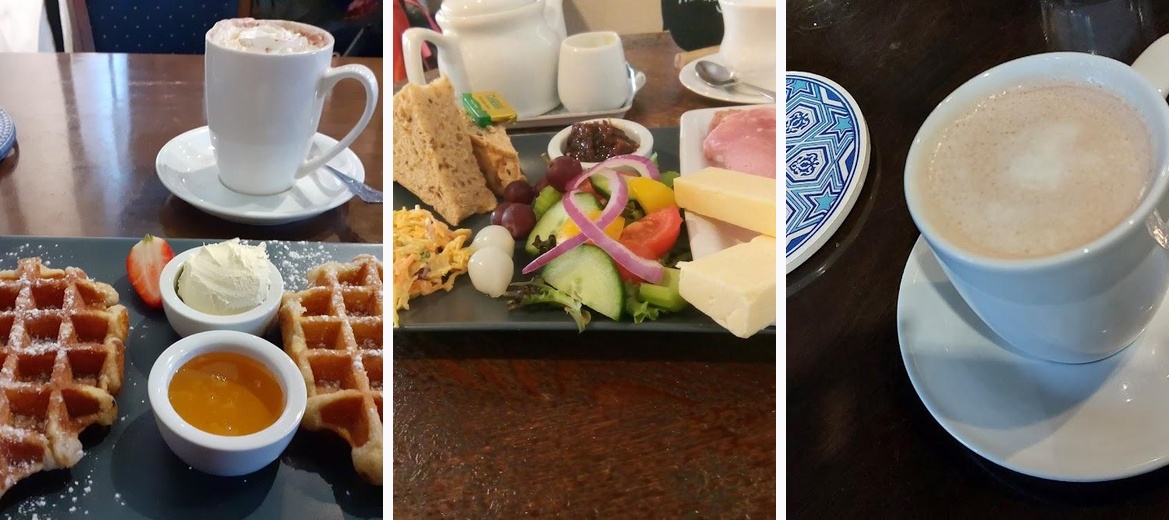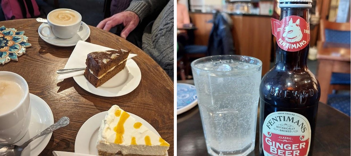 Lovely cafe with a great choice of food, well presented, delicious and very reasonably priced. Good standard menu and daily special board available. We had lunch, both having soup and sandwiches with tea and coffee and all for less than £20. Much nicer to use a cafe like this full of character than a Costa etc.